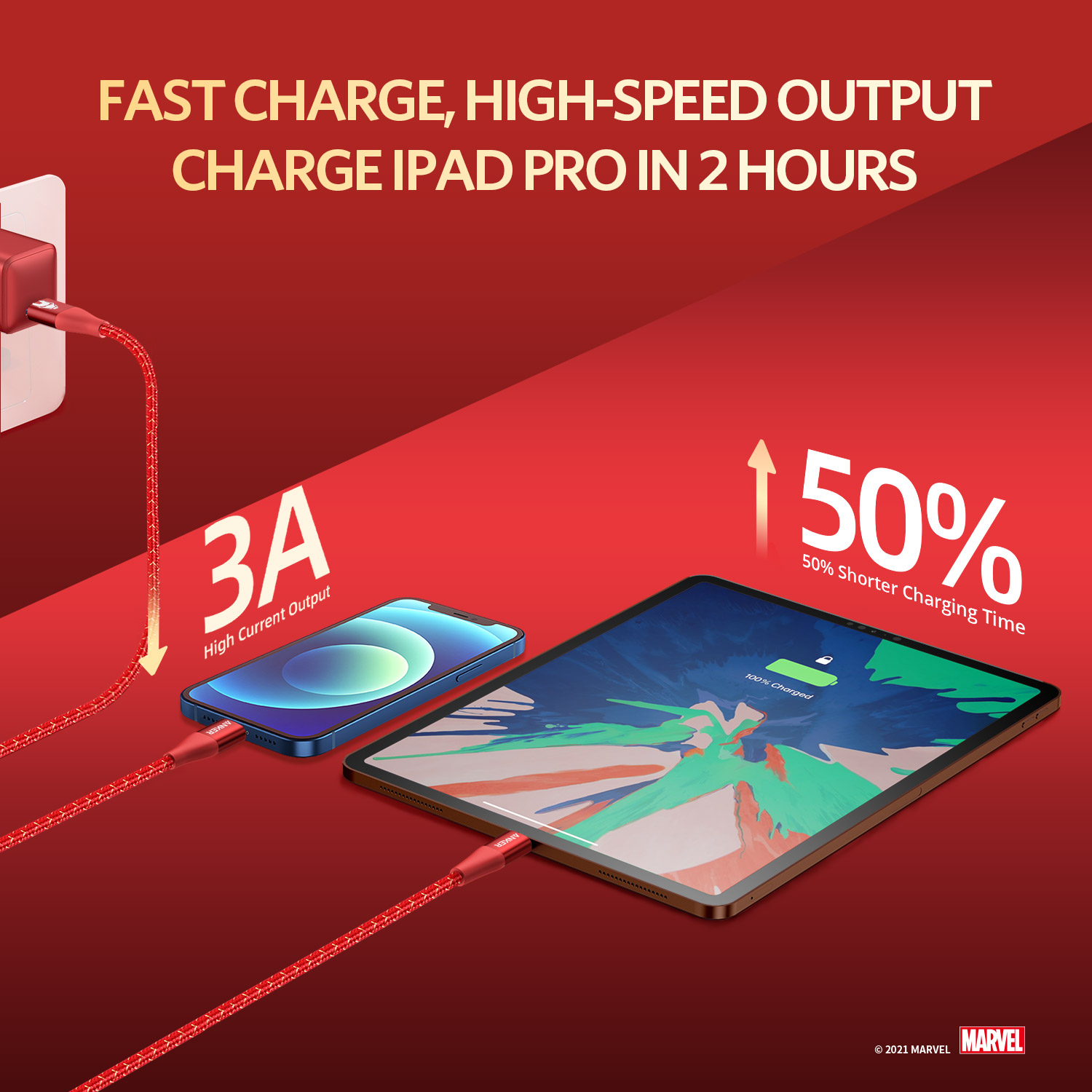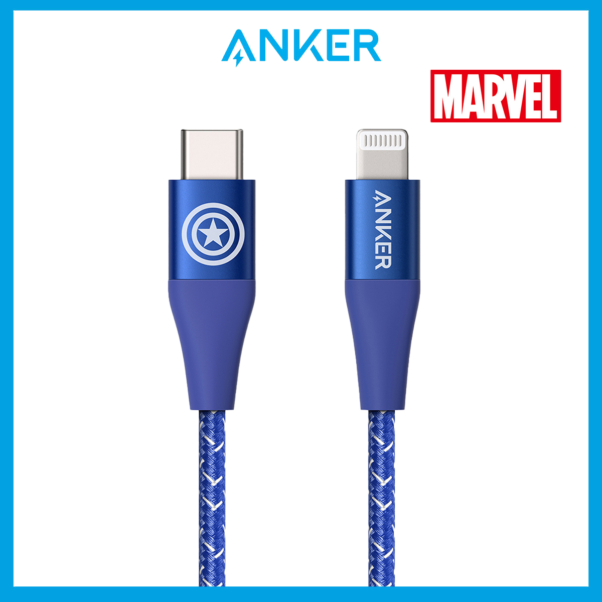 Anker x Marvel PowerLine+ II USB C to Lightning Cable 3ft|6ft iPhone Cable [Apple MFi Certified] Braided Nylon Fast Charging Cable for iPhone, iPad, and iPod (A9548|A9551)
