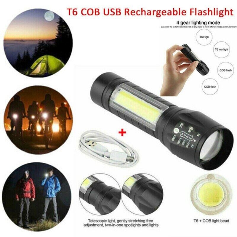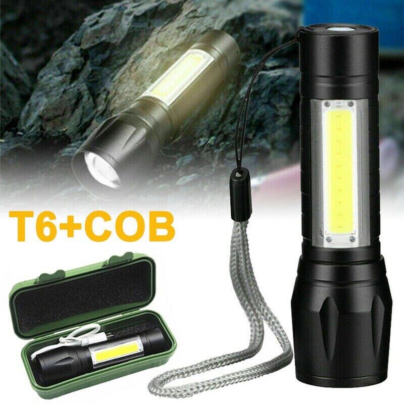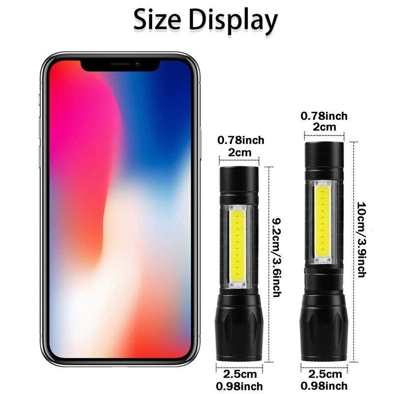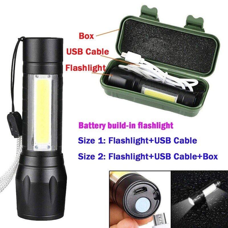 Mini Flashlight Zoom Powerful Torchlight with COB side light Built In Battery Rechargeable Pocket Torch for Camping /Cycling/Hiking