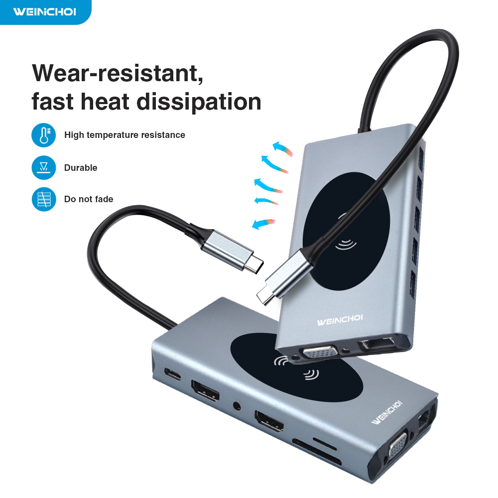WEINICHOI 14 in 1 Docking Station USB Type C HUB To HDMI-Compatible Adapter OTG Vga RJ45 Lan Multi USB PD 3.0 USB-C for MacBook Pro Air 4KSplitter