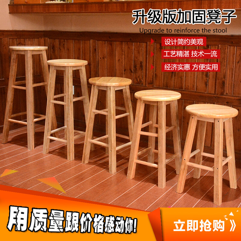 Ladder Stool Home High-Leg Stool Solid Wood High-round Stool Fashion Creative Bar Stool Bar Stool Modern High Chair High Bench