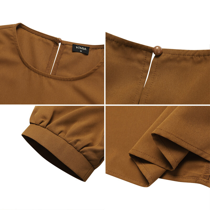 VONDA Women Summer Solid Color O Neck Casual Loose Knee-length T-shirt Dress (Korean Causal)