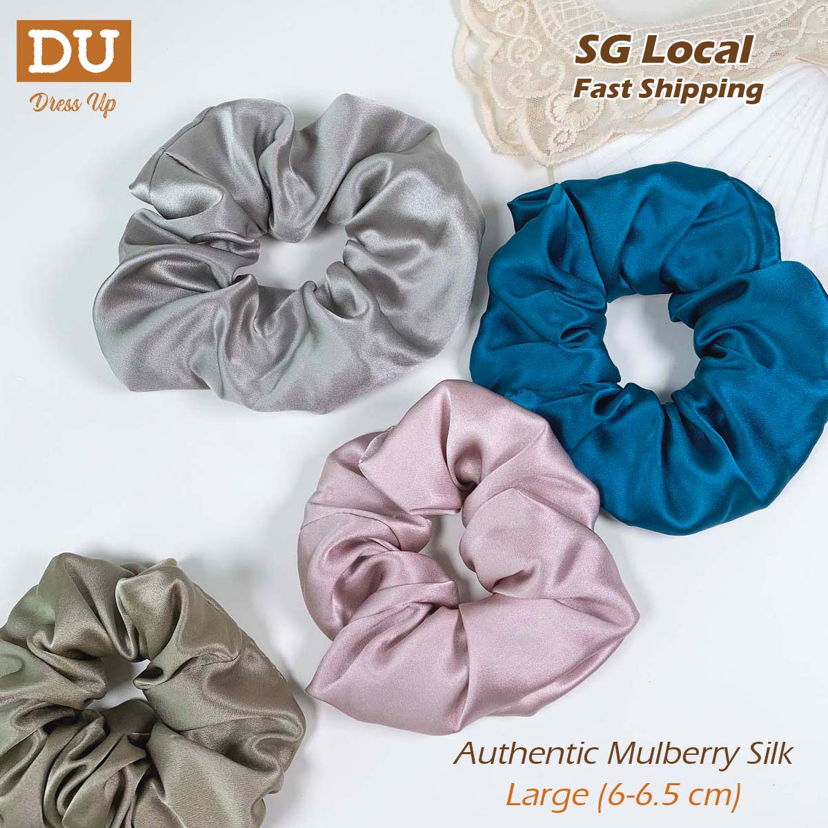 [SG ✨ Large]100% Authentic Mulberry Silk Scrunchies - 19 Momme Hair Ties Hair Ropes Hair Bands Premium Elastics Ponytail Holders for Women Girls Hair Accessories, No Hurt to Your Hair, Dress Up