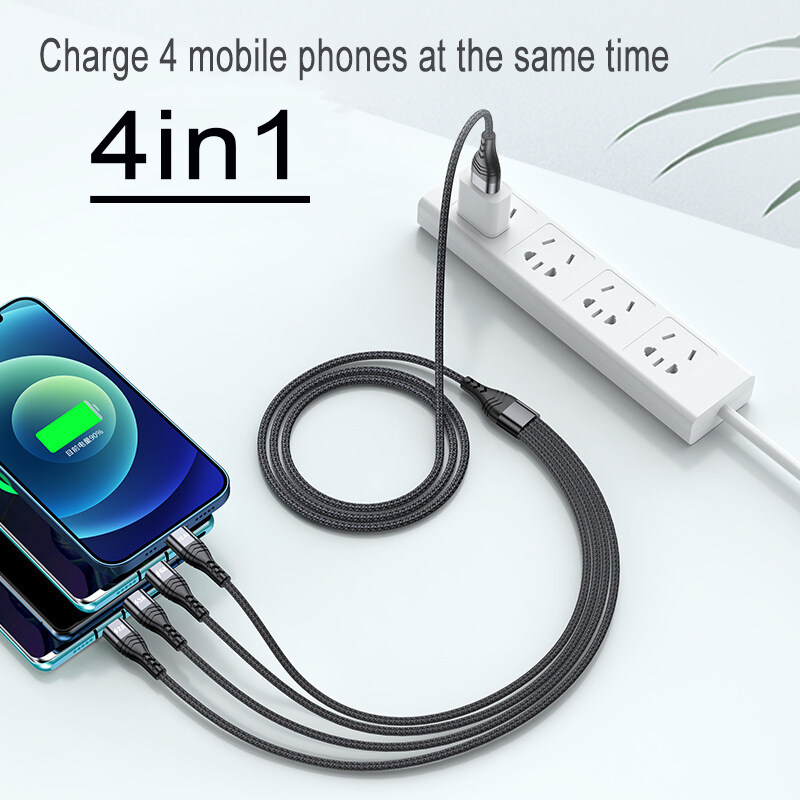 DISOUR Original 2M 6A 66W Super Fast Charging Cable 4 In 1 2*Type-C Micro USB Lightning Charger Cable Nylon Braided For IOS Android For Xiaomi Samsung iPhone All Smart Phones 1.2M 3IN1