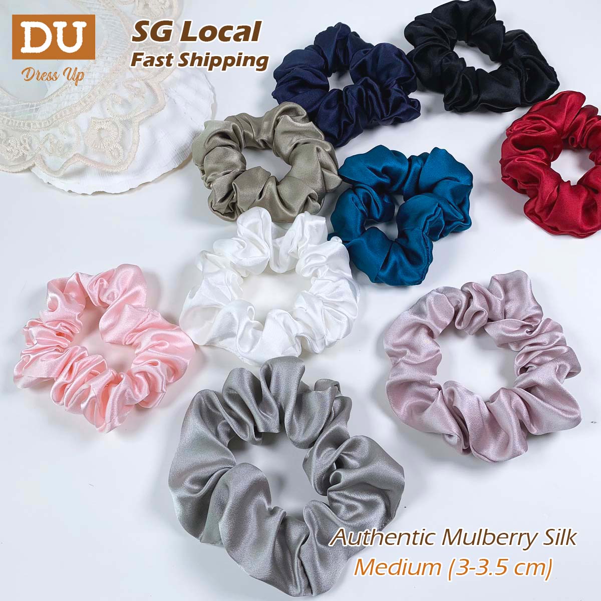 [SG ✨ Medium]100% Authentic Mulberry Silk Scrunchies - 19 Momme Hair Ties Premium Hair Ropes Hair Bands Elastics Ponytail Holders for Women Girls Hair Accessories, No Hurt to Your Hair, Dress Up