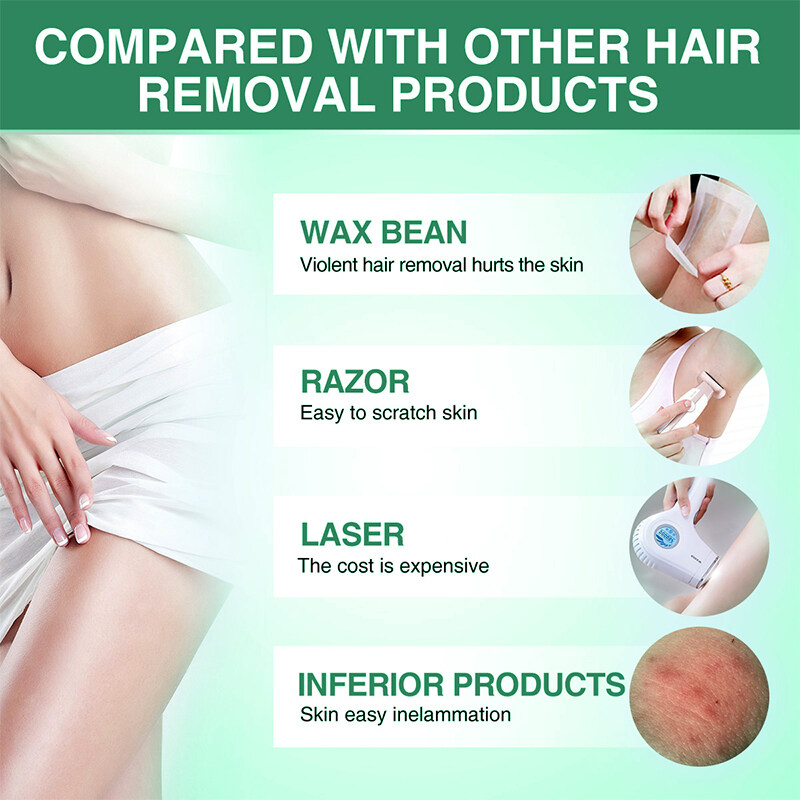 【NATURAL GENTLY INGREDIENT】 Safe formula with aloe vera, green tea and coconut oil to avoid redness and inflammation. Aloe has soothing and moisturizing effects. Green tea helps anti-inflammatory and coconut oil deeply moisturizes the skin. 【SAFE AND PAINLESS】 Hair removal cream uses aloe to calm the area you're removing, and provides a super smooth remove. No nicks or bumps left on the skin. You can't feel any discomfort and pain.【WITHOUT LEAVING DARK SPOTS】 Hair Remover Cream rapidly penetrates the hair follicle and effectively soften hair roots. Deep hair removal till roots and without leaving dark spots. Let your skin is smmoth and brighten. 【MOISTURIZING & MOIST】 This hair removal infused with aloe, green tea and coconut oil. It offering not only painlessly removes unwanted body hair, but it also moisturizes and soothes in the process. 【EASY TO USE】 Easy to operate, apply hair removal cream full cover the hair. Effectively removes hair in 7-10 minutes. Easy to carry and keep your gorgeous on every occasion.