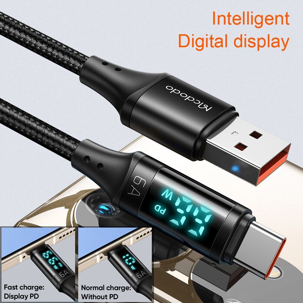 Mcdodo 66W USB Type C Cable For Samsung S22 S21 S20 Ultra Note 20 Huawei Mate 40 P50 P40 Xiaomi 11 6A Fast Charging Digital Display Mobile Phone Data Cord