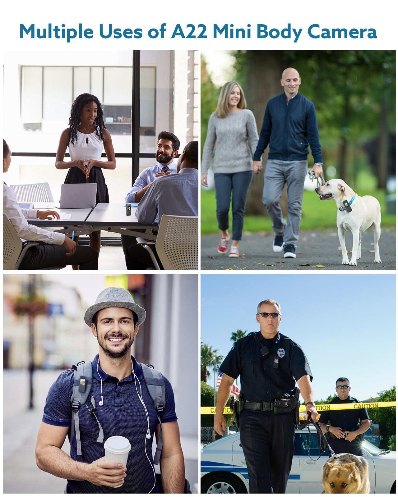 - A 1.3 inch LCD screen works for real-time viewing and managing the recorded videos/audios/photos on the mini body camera as you want, anytime anyplace.