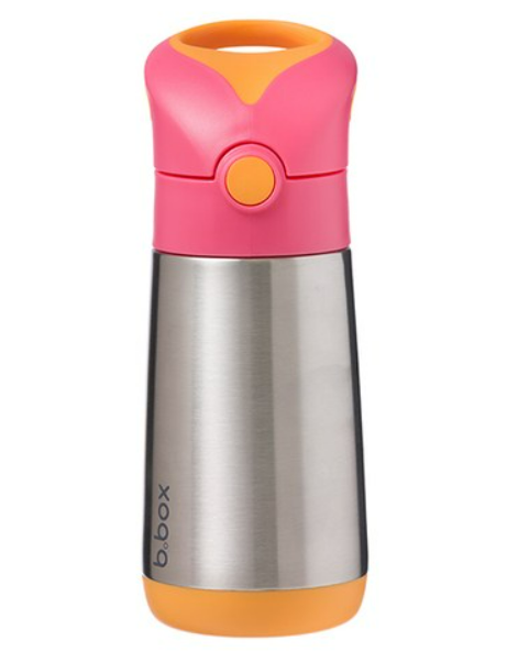 Clean modern design and big kid aesthetic. Available in six fab b.box colours. Kids love our easy drinking silicone straw top. Parents love no leaks in the bag (when the lid is closed). Replacement straw packs available, sold separately. When using to keep liquids warm - for best performance fill the stainless steel base with hot water for a few minutes to warm it before pouring water out - and filling with warm liquids.