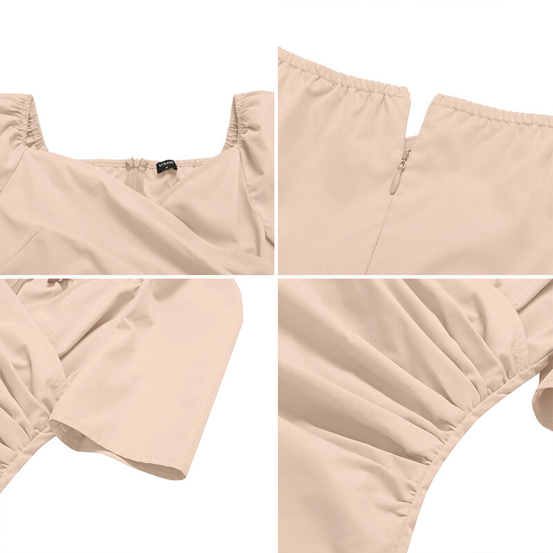 VONDA Women Short Sleeve Solid Color High Waist Skinny Mini Dress Casual Loose Holiday Party Dress (Korean Causal)
