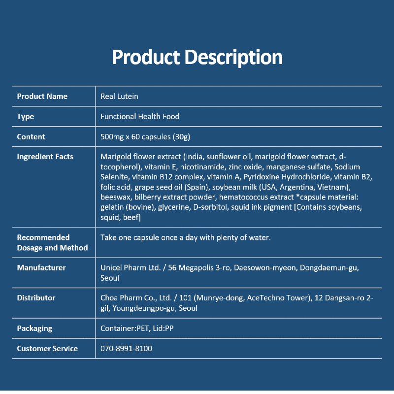 ✔️ Macula pigment decrease from aging → Lutein Consumption → Maintains pigment density → Helps eye health