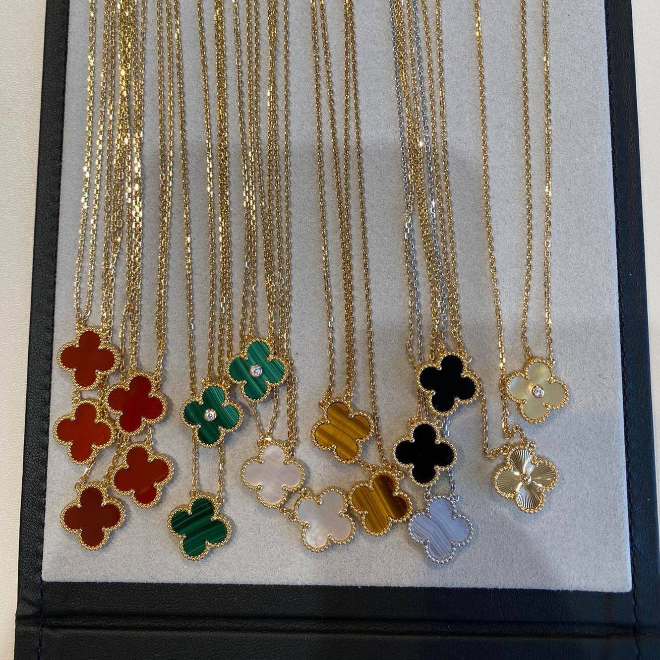 Four-leaf clover with diamond and Nature Stone Pendant Necklace All colors