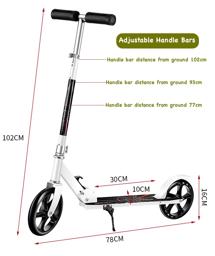 *3-Level Adjustable Handlebars: Adjustable handlebar range 77cm-102cm, suitable for height 110-185 cm. Great for both kids and adults.