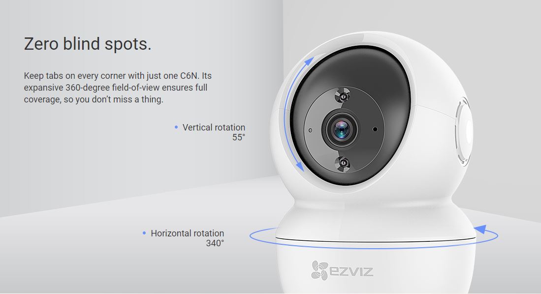 (ALLSTARS : We Are Back Promo) EZVIZ C6N Smart Home Camera Wireless IPCAM / 2MP, 1080P / Pan, Tilt, 2.4GHz, 2-way talk, motion detection, night vision (CS-C6N) (Warranty 1year with Spectra Infotech)