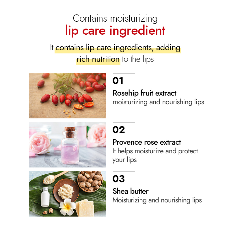 Point: Isododecane, Iron Oxide Yellow(CI 77492), Titanium Dioxide (CI 77891), PEG-10 Dimethicone, Iron Oxide Red (CI 77491), Red 7 (CI 15850), Yellow 6 (CI 15985), Fragrance, Caprylyl Glycol, 1,2-Hexanediol, Ethylhexylglycerin, Propanediol, Aluminum Hydroxide, Silica, Illicium Verum (Anise) Fruit Extract, Iron Oxide Black (CI 77499), Diisostearyl Malate, Butyrospermum Parkii (Shea) Butter, Rosa Centifolia Flower Extract, Rosa Canina Fruit Extract, Water, Butylene Glycol