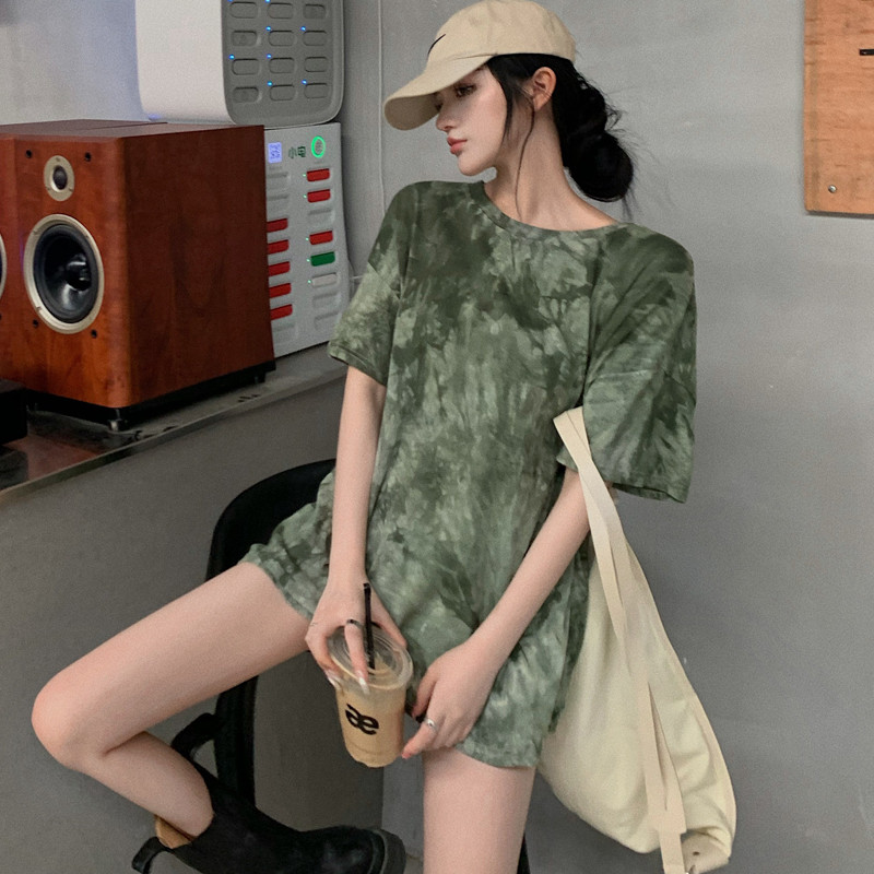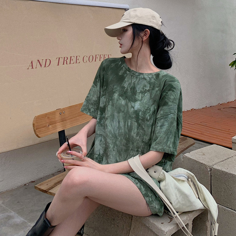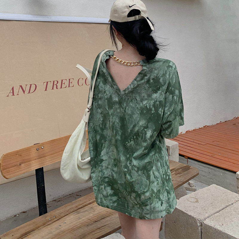 INWPLLR Backless Tie-dye Tshirts Women Ins Loose Short Sleeve T-shirt Summer New Style Mid-length Tops 4XL