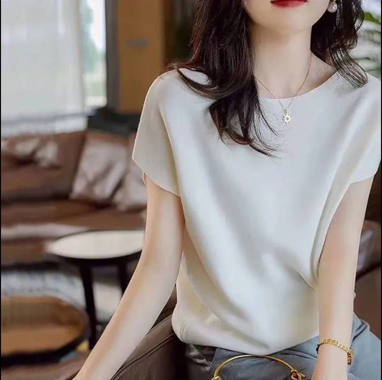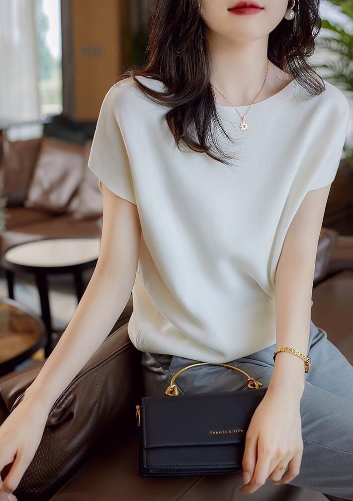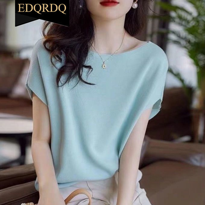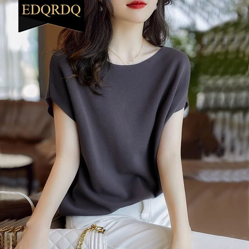 EDQRDQ Boat Neck Batwing Sleeves Knitted Ice silk T-shirt Sweaters and Pullovers Tops for Women