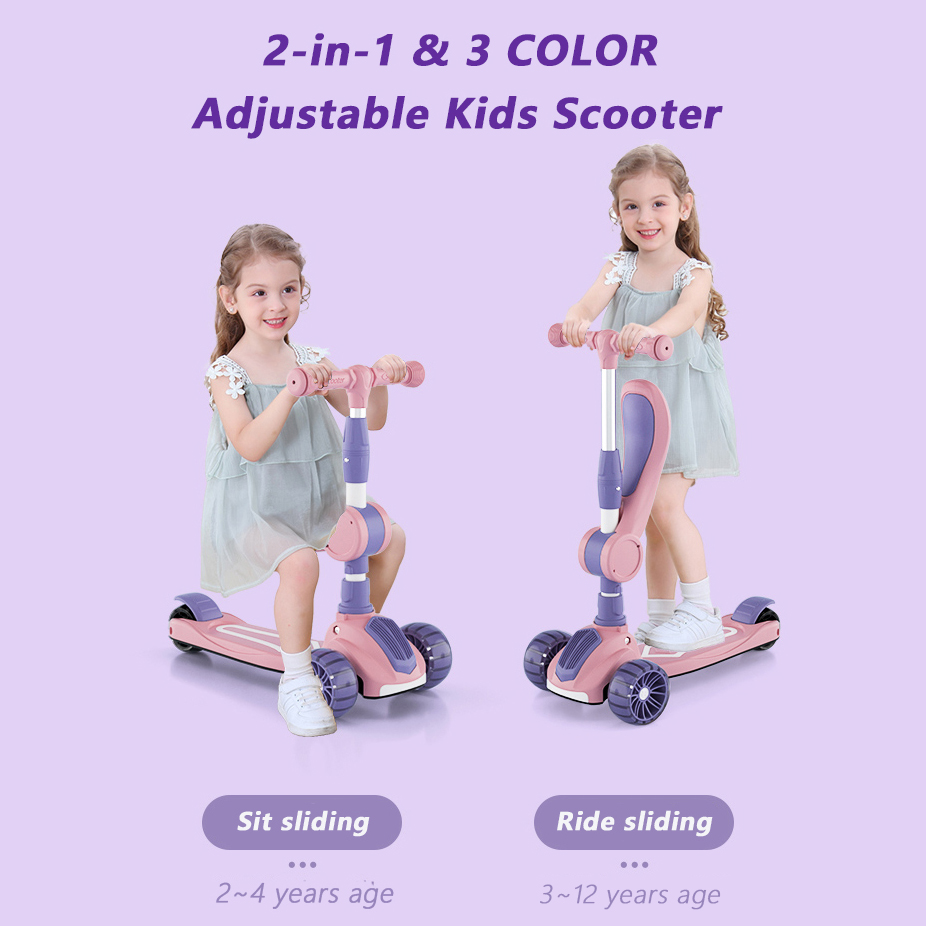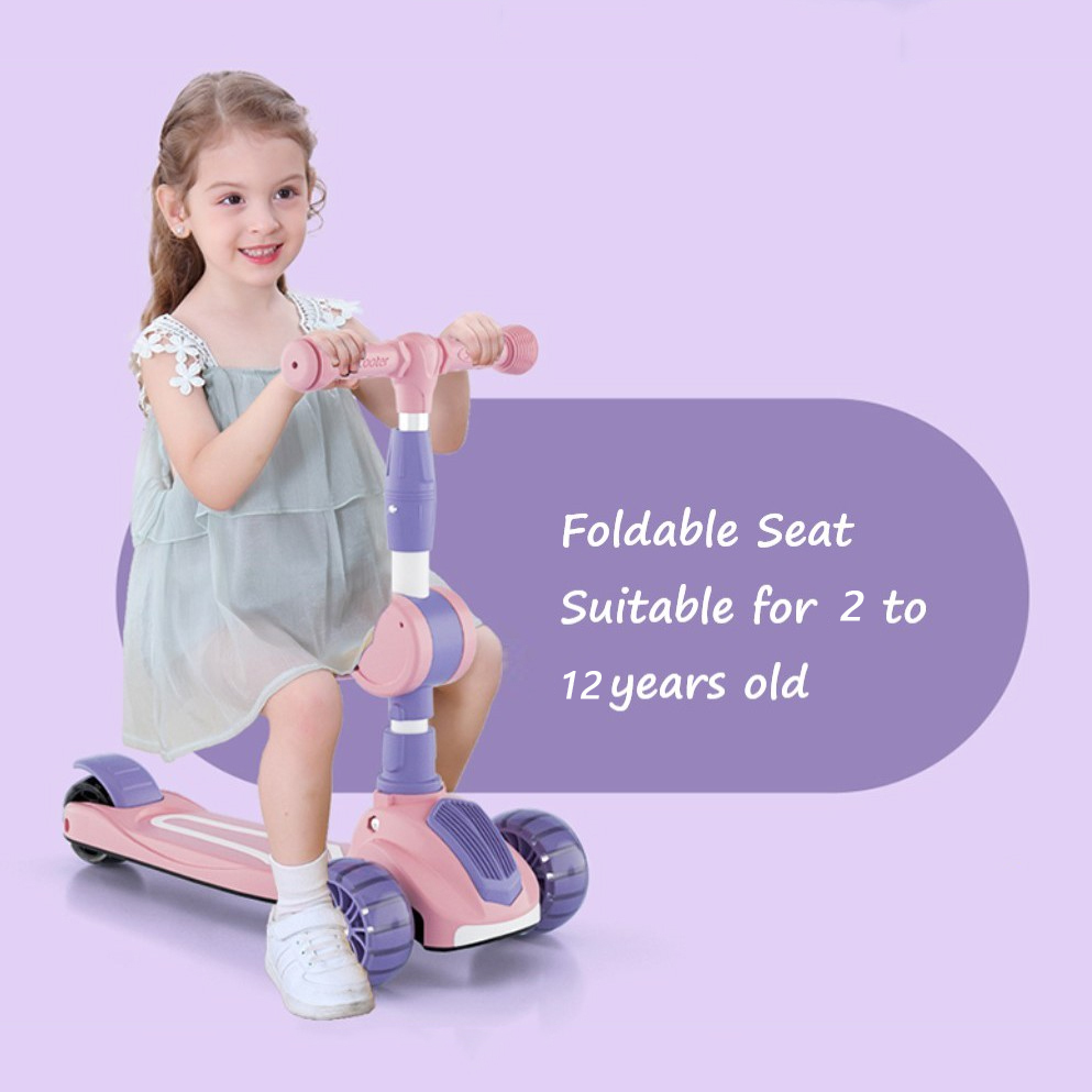?? OneTwoFit Kids Adjustable Light Scooter With Seat Music Colored Children Scooters