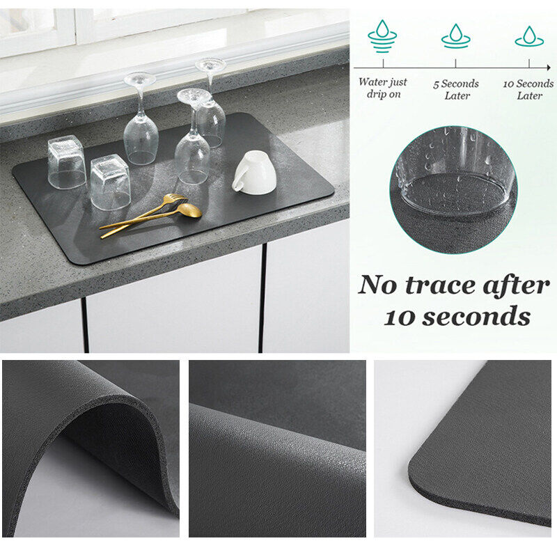 Quick Drying Mat Rectangle Placemat Diatomite Placemat Dish Mat Kitchen Draining Sink Anti-Slip Pad Durable Cup Coaster Tableware dish drying mat Kitchen accessories Coffee Pad Rubber Backed Absorbent