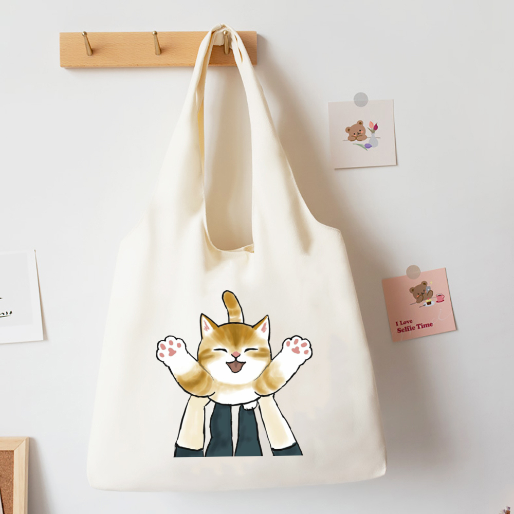 Cute Cat Print Canvas Tote Bag Casual Storage Bags Large Capacity Shopping Bag Women Totebag for Student Shoulder Bag 帆布包 Ins