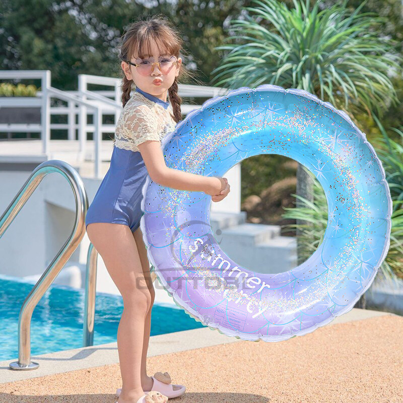 Outtobe Rainbow Swimming Ring Transparent Glitter Pool Floats Swimming Ring Adult Children Inflatable Pool Tube Giant Float Boys Girl Water Swim laps Swimming Ring with Handle