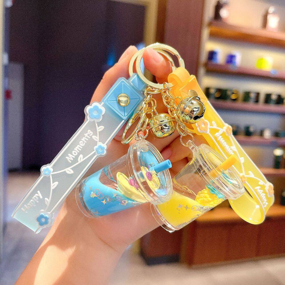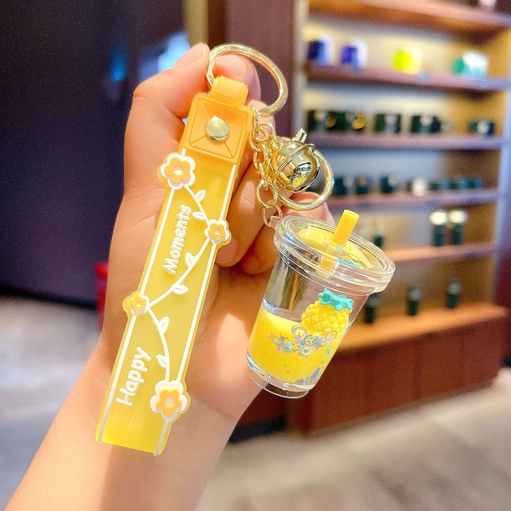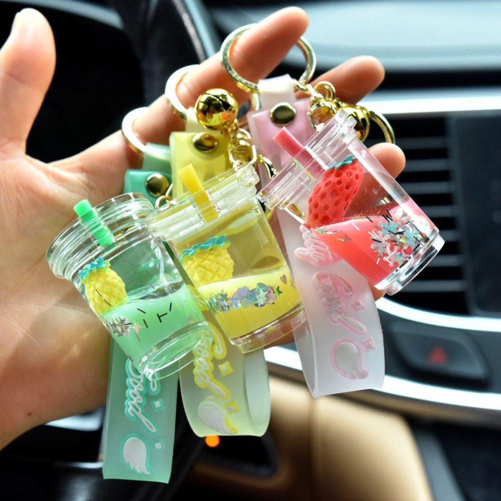 HUIHEYU Into The Oil Moving Key Holder Fashion Jewelry Exquisite Gifts Car Key charms Bag Ornaments Wristlet Keychain Milk Tea Cup Pendant Quicksand Fruit Keychain