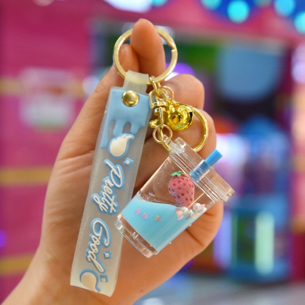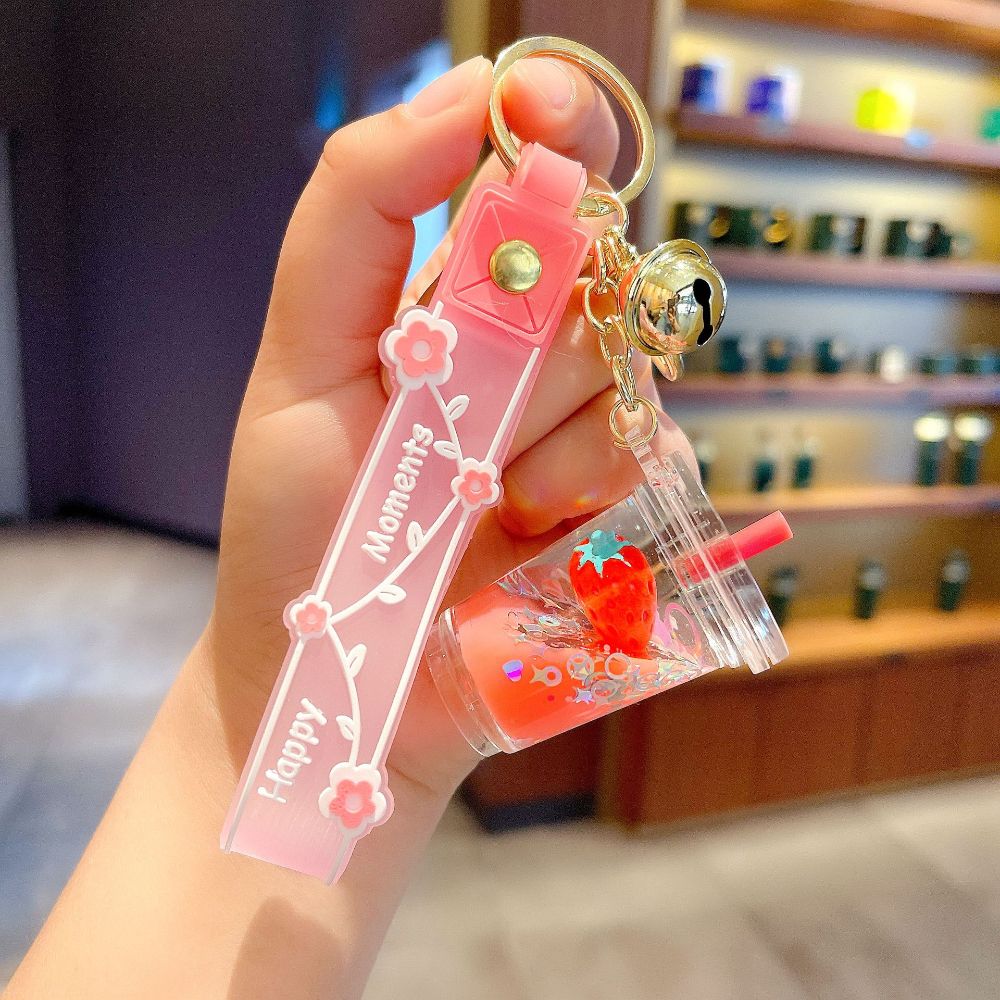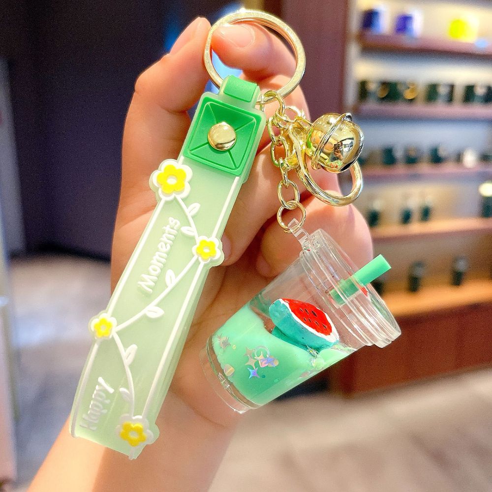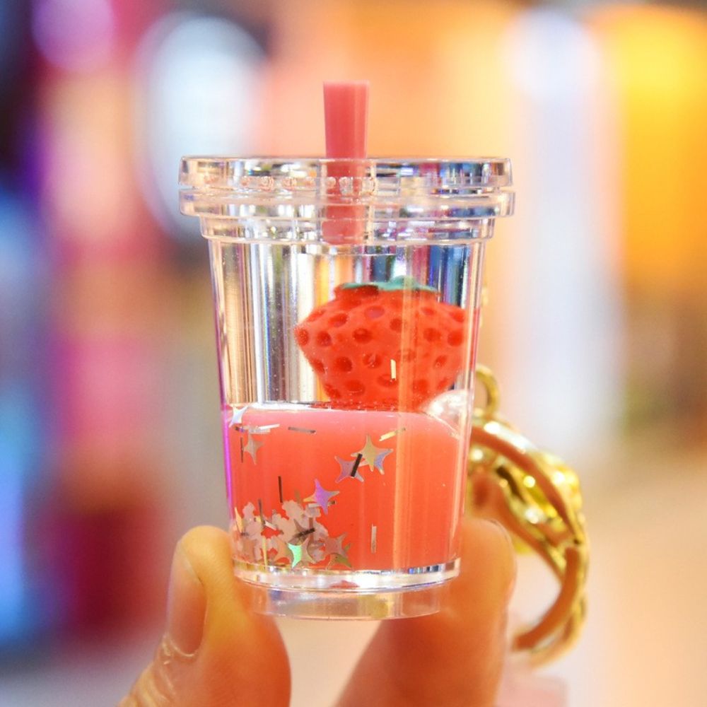 HUIHEYU Into The Oil Moving Key Holder Fashion Jewelry Exquisite Gifts Car Key charms Bag Ornaments Wristlet Keychain Milk Tea Cup Pendant Quicksand Fruit Keychain