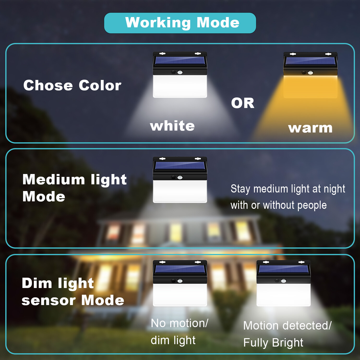 104LED Solar Security Lights Outdoor, Seeway 2 in 1 White and Warm Light Solar Motion Sensor Lights 270ºWide Angle 2200 mAh Solar Powered Lights Waterproof Solar Powered Durable Wall Lights Outside 3