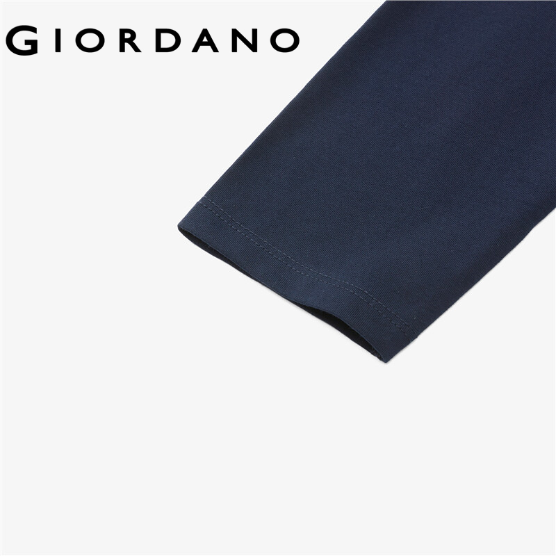GIORDANO Women T-Shirts Letter Embroidered Stretchy T-Shirts Mockneck Long Sleeve Plain Color Simple Basic Casual Tee 13322564