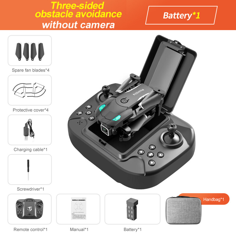 • With Camera: Three-Sided Obstacle Avoidance, Height-Fixing Function, Aircraft Foldable, Six-Way with Gyroscope, One-key Take-off, One-key Landing, Ascending and Descending, Forward and Backward, Left and Right Side Flight, Steering, Headless Mode, Body Light /Headlights,Gesture Photo, Video, Headless Mode, Emergency Stop, Trajectory Flight, Gravity Sensor, Music, 50 Times Zoom, Automatic Photo