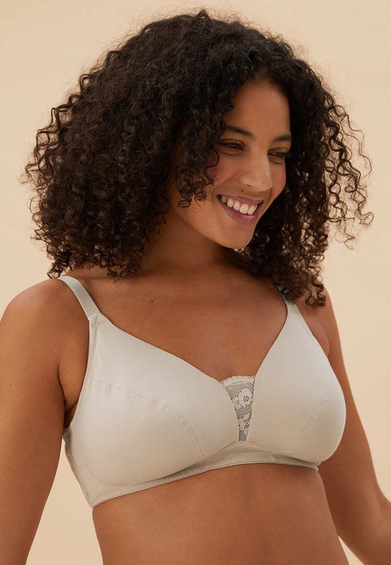 With their soft cotton-blend fabric and feminine lace detailing, these bras combine prettiness and practicality. Their full-cup shape is unpadded and non-wired for a comfortable wear and a natural outline. Handy three-pack is ideal for stocking up. M&S Collection: versatile styles in modern shapes with unique and playful details.