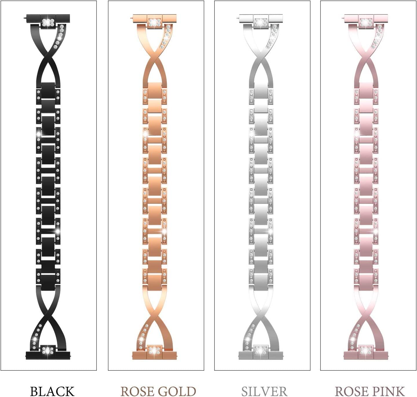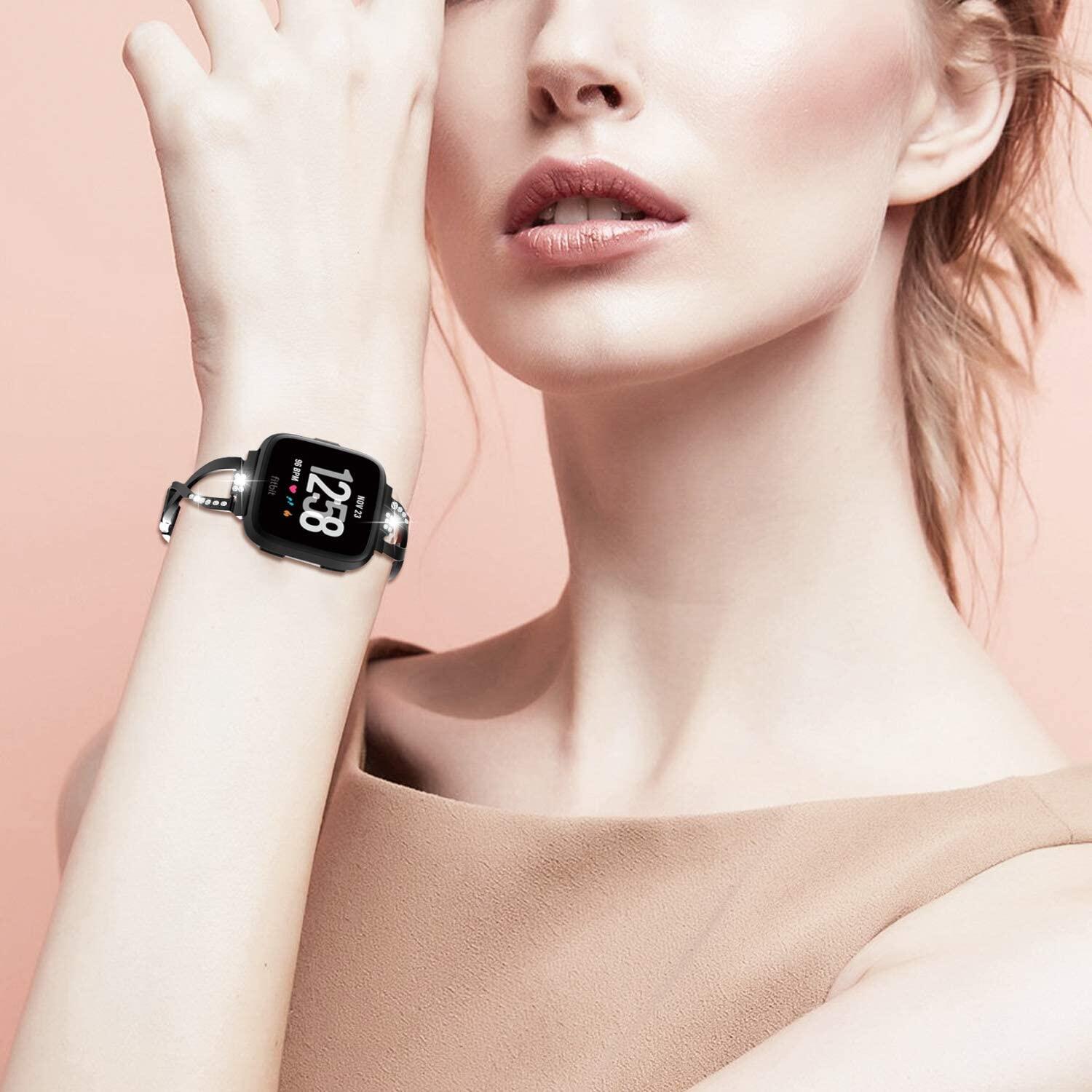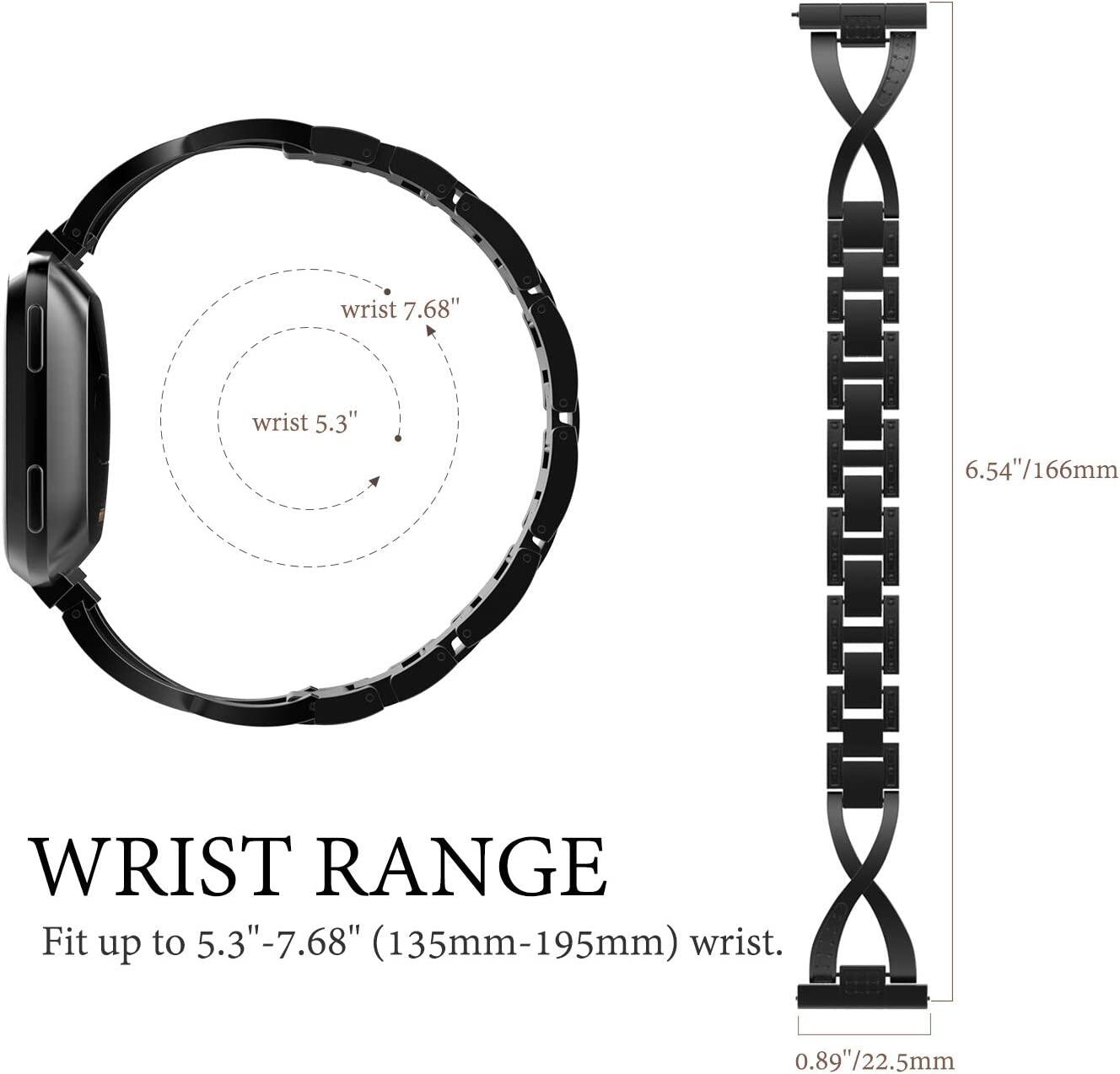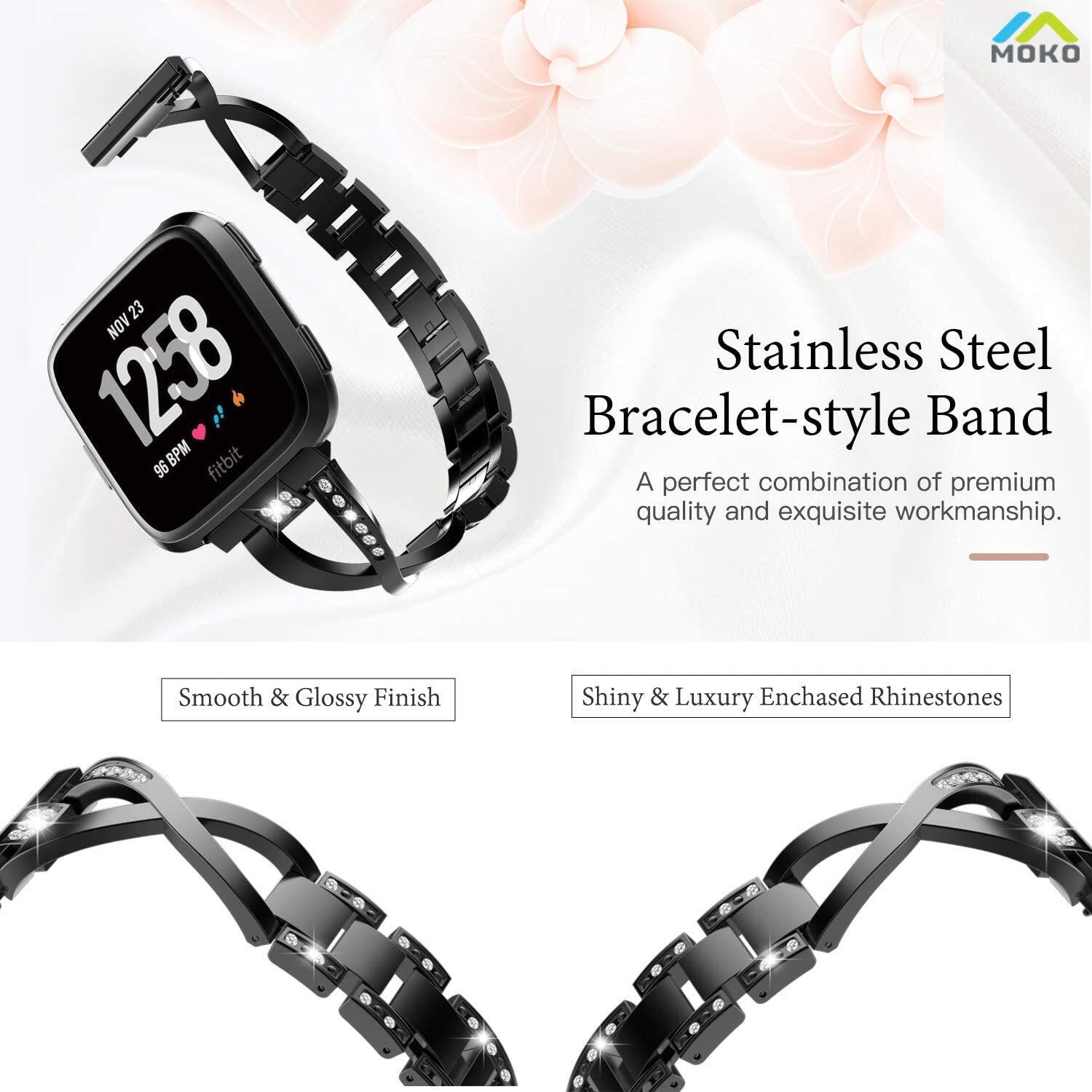 Moko Replacement Band Compatible with Fitbit Versa/Versa Lite/Versa 2, Premium Stainless Steel X-link Watch Band with Inlaid Rhinestones Fit Fitbit Versa/Versa Lite/Versa 2