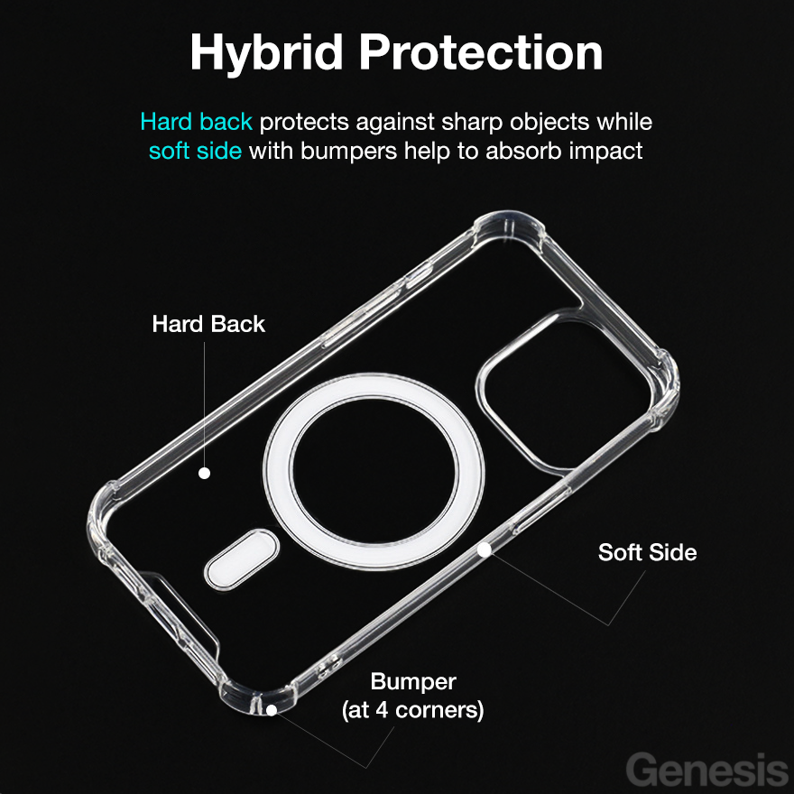 Genesis Magsafe iPhone Case 14 Pro Max/ 13/ 12/ Phone Cover Clear Transparent Wireless Magnetic Charging Casing
