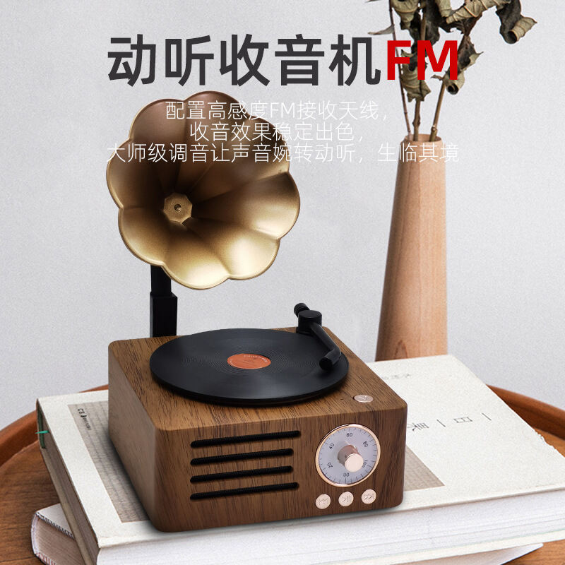 American-Style Retro Textured Bluetooth Speaker Vinyl Record Player Petunia Phonograph Gift Other V8