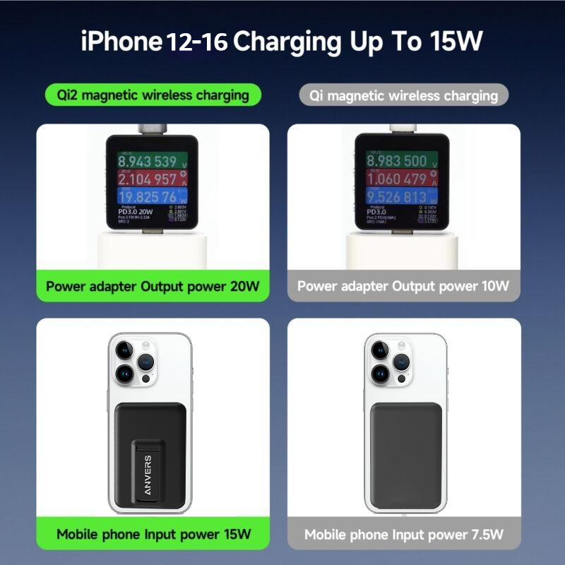- **Wireless Output**: 7.5W (Qi2) for iphone 13-16,15W for Android