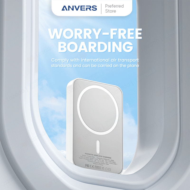 Anvers Magsafe Power Bank 10000mAh Wireless Magnetic Battery Pack Fast Charging Portable Charger for iPhone 16/15/14/13/12