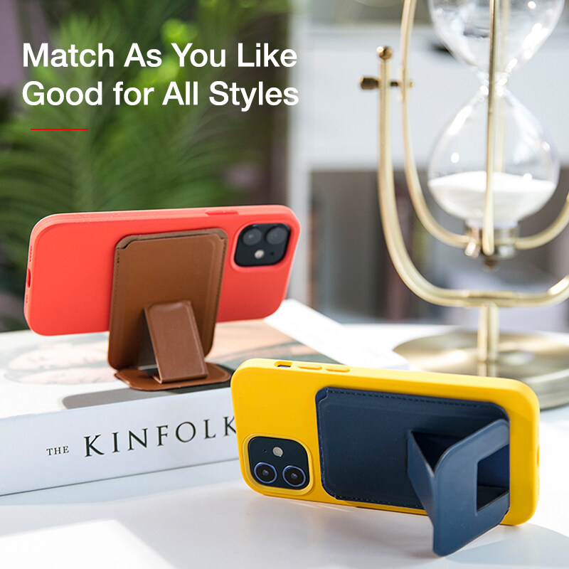 ?BlueWow Premium Leather Magsafe Phone Card Holder Magnetic Wallet for iPhone 12/13 Card Holder KB01 Phone Stand