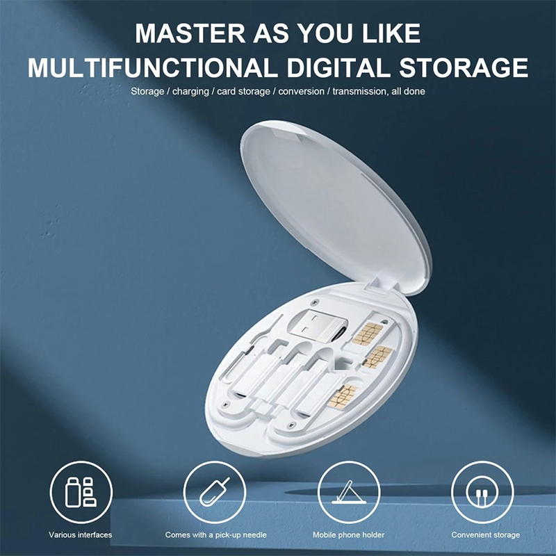 5 In 1 60W Fast Charging Data Cable Storage Box Multi-function Mobile Phone USB Type C Charge Line Organizer Case with Recover Card Pin