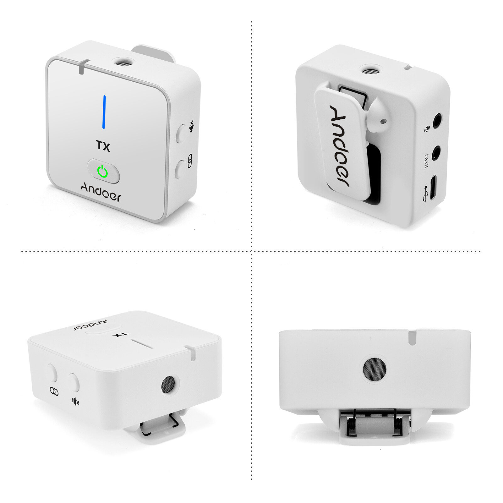 Andoer MX5 2.4G Wireless Recording Microphone System with Transmitter Receiver Clip-on Lavalier Mic 50M Effective Range Built-in BT for Type-C & 3.5mm Smartphone DSLR Camera DV Vlog Video Recording In