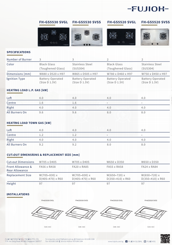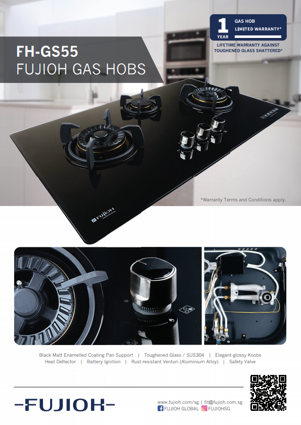 FUJIOH FH-GS5530 SVSS 3 BURNER STAINLESS STEEL GAS HOB WITH SAFETY DEVICE