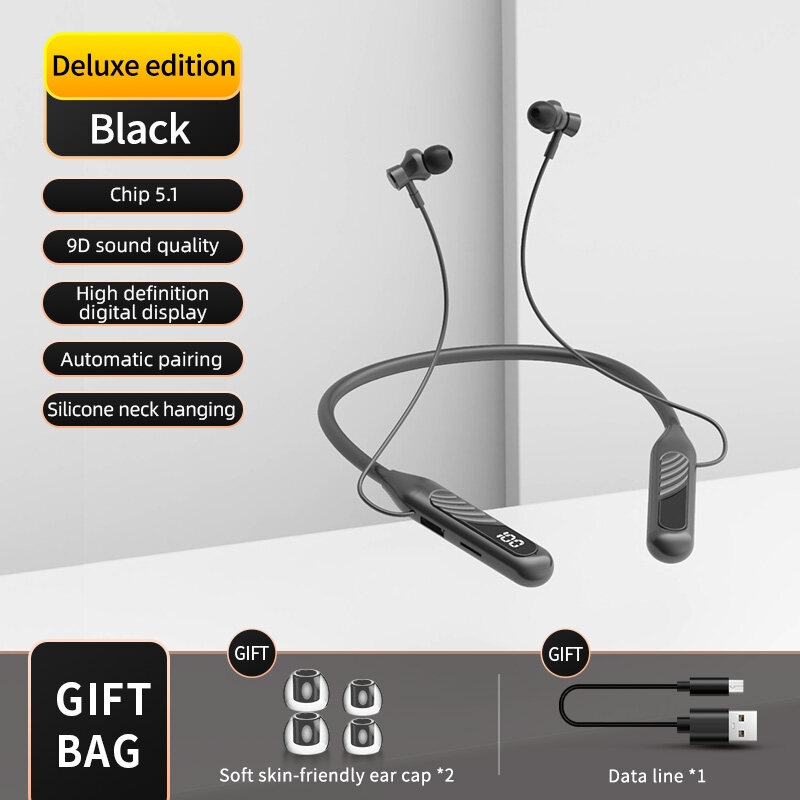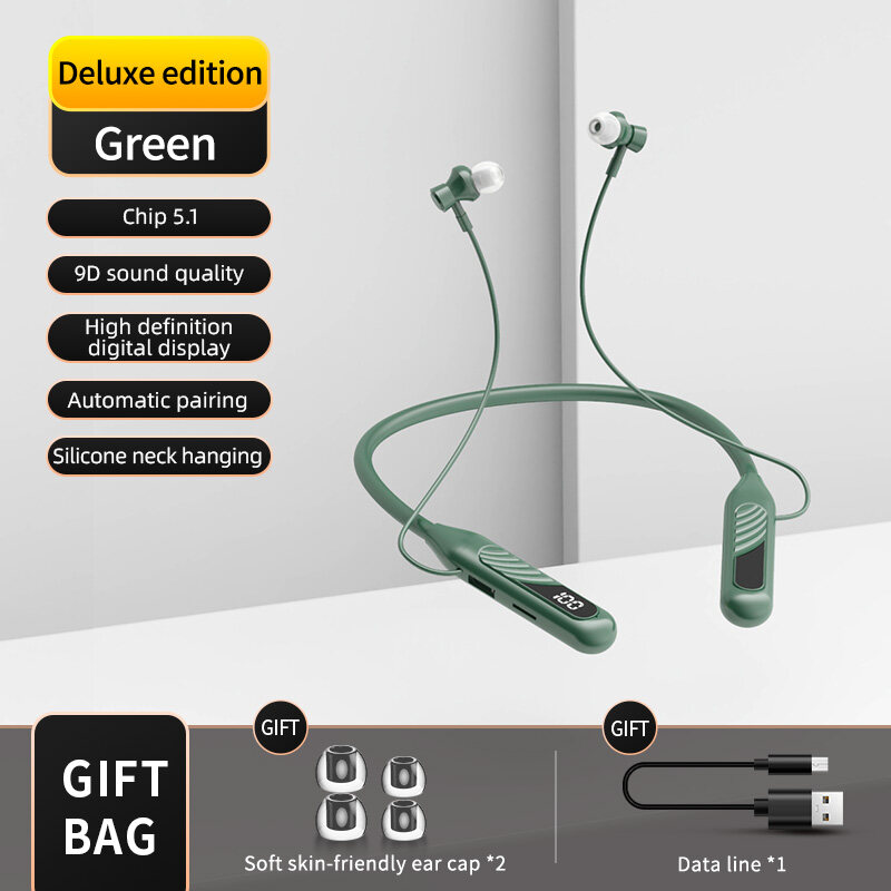【1800hour long battery life】TWS Bluetooth Earphone Stereo Wireless Neck Hanging Headphone with mic Gaming Headset Deep Bass Noise Cancellation Type-c Earbuds
