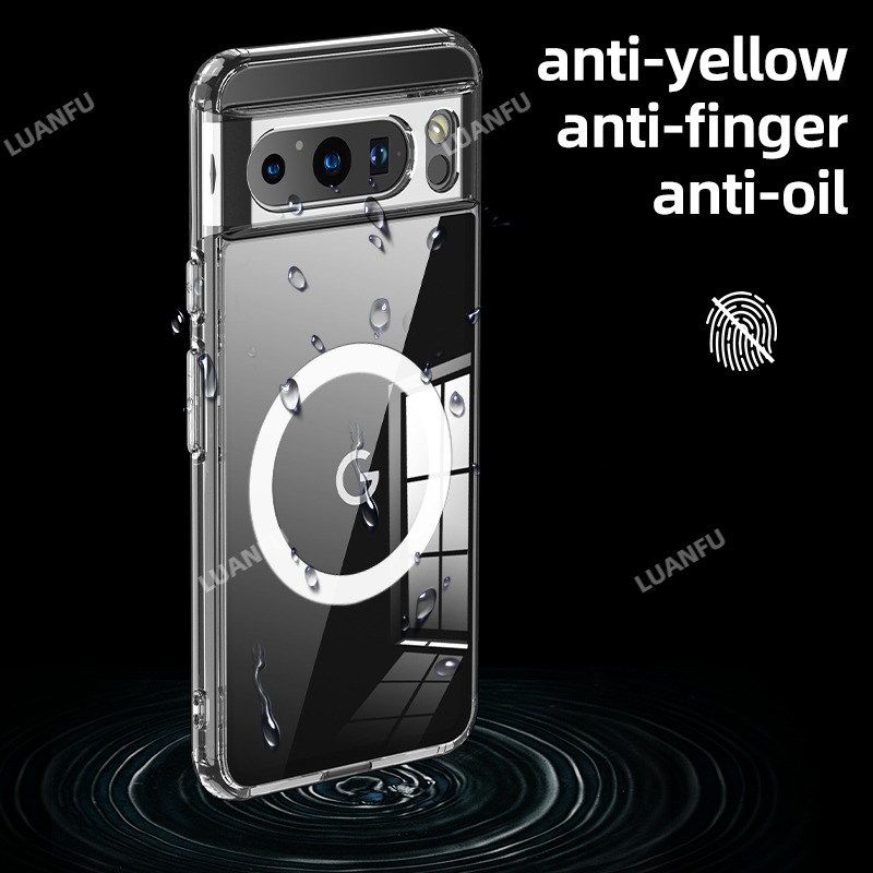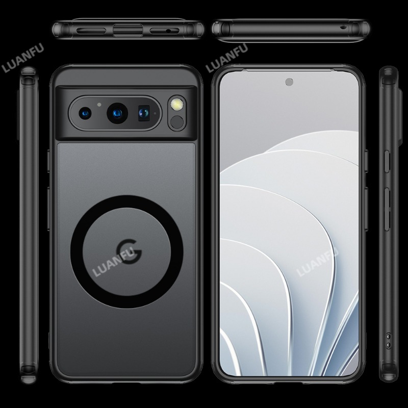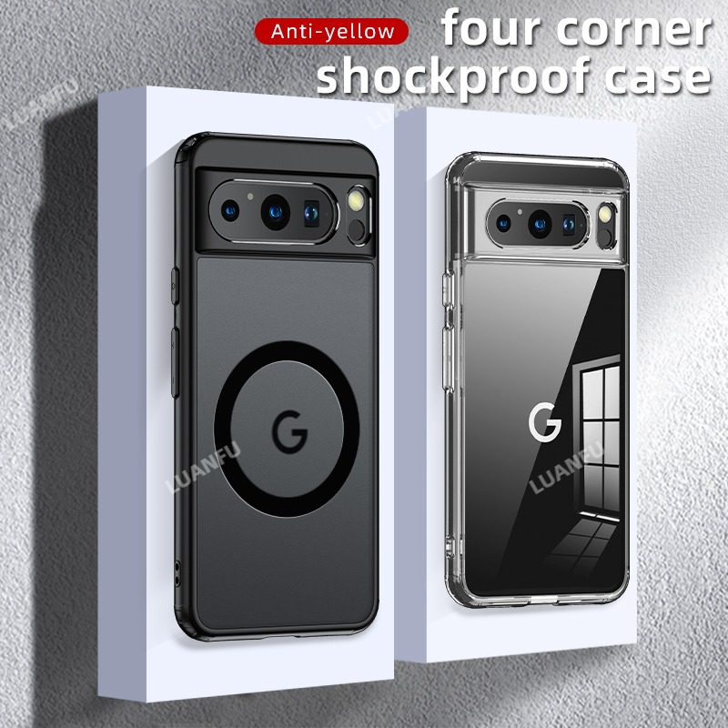 Case for Google Pixel 8 Pro Matte Transparent Magsafe Back Cover Four Corners Built-in Safety Mat Anti-fall Anti-collision and Shockproof Protective Cover