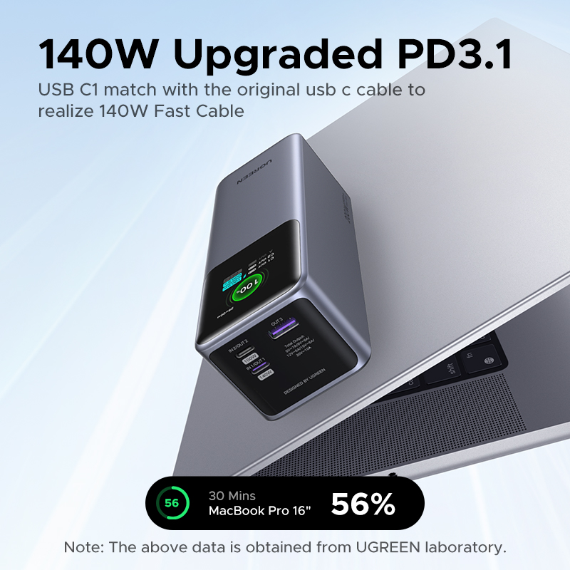 Single Port Output: C1 140W max, C2 100W max, USB-A SCP 22.5W max.