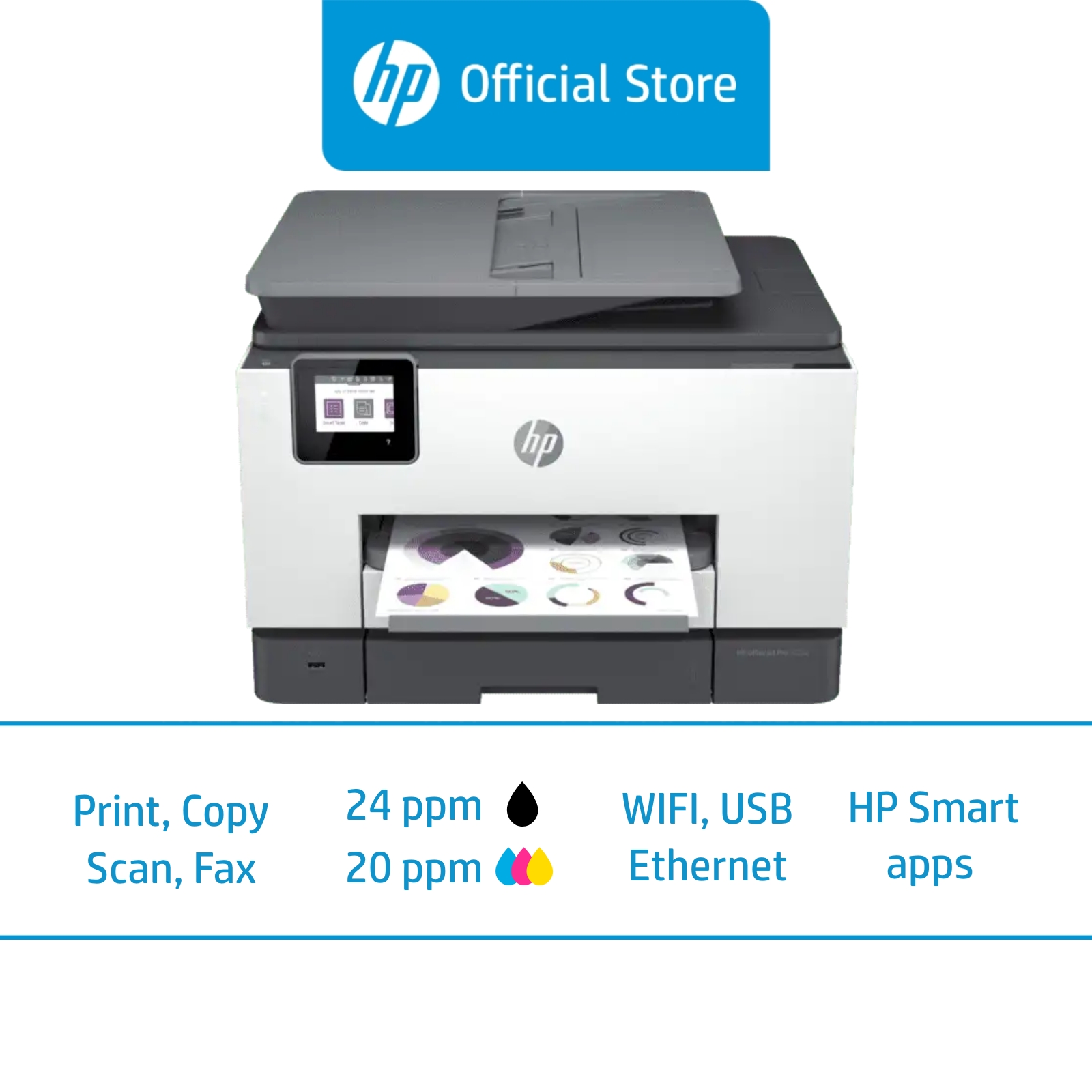 HP OfficeJet Pro 9020 All-in-One Wireless Color Inkjet Printer / Print, Copy, Scan, Mobile Fax / ADF / Front USB Port / Duplex / Two-Sided Printing / Two-Sided Scanning / Touchscreen / One Year Warran