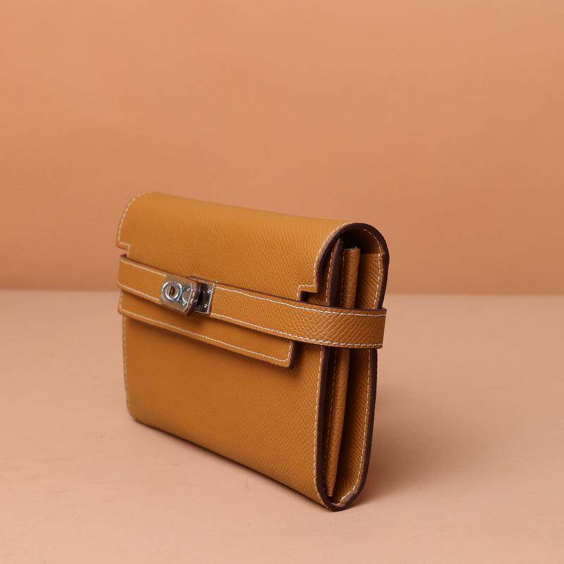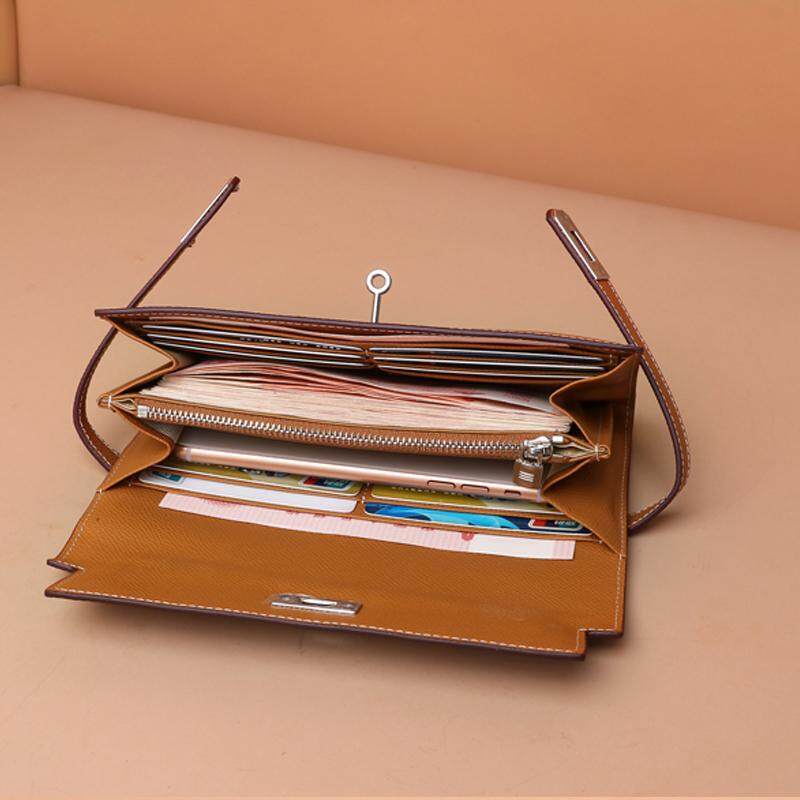 Vasono High Quality Italian Imported Genuine Cow Leather Epsom Birkin Long Clutch Wallet Women Purse Money Clip Holder