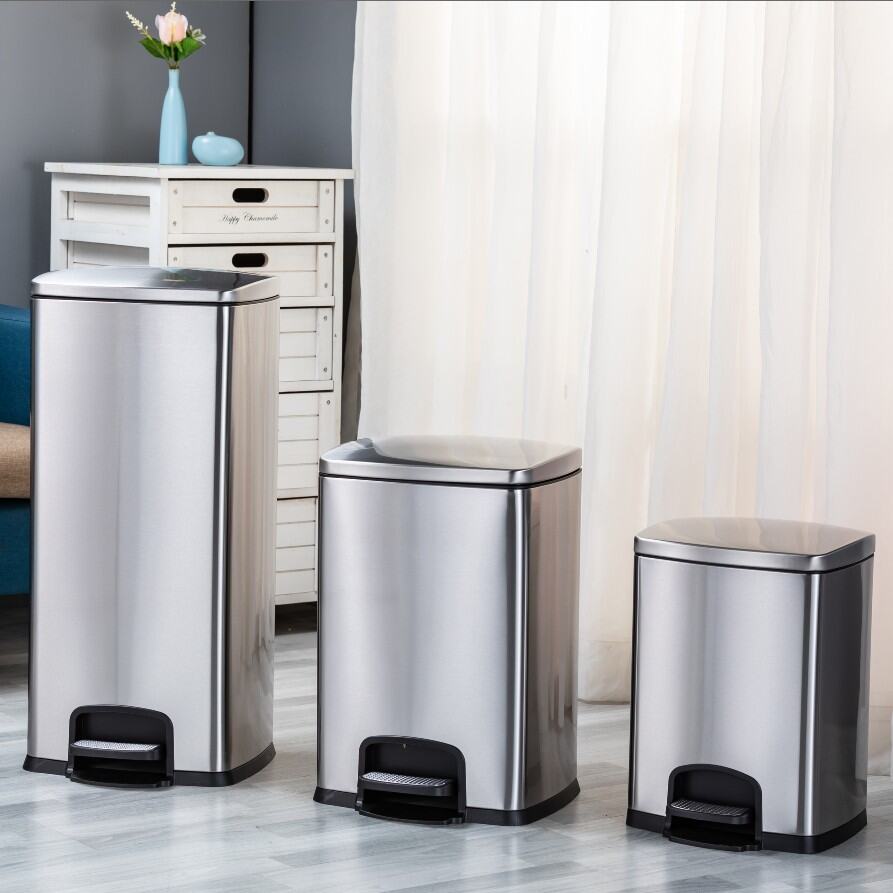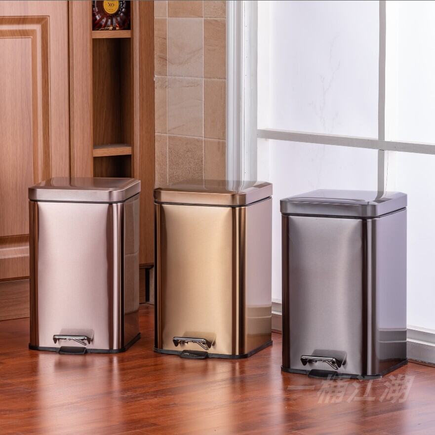 Stainless Steel Trash Can Step-on Kitchen Bathroom Creative Fashion Home Living Room Toilet Bedroom Square Step-on
