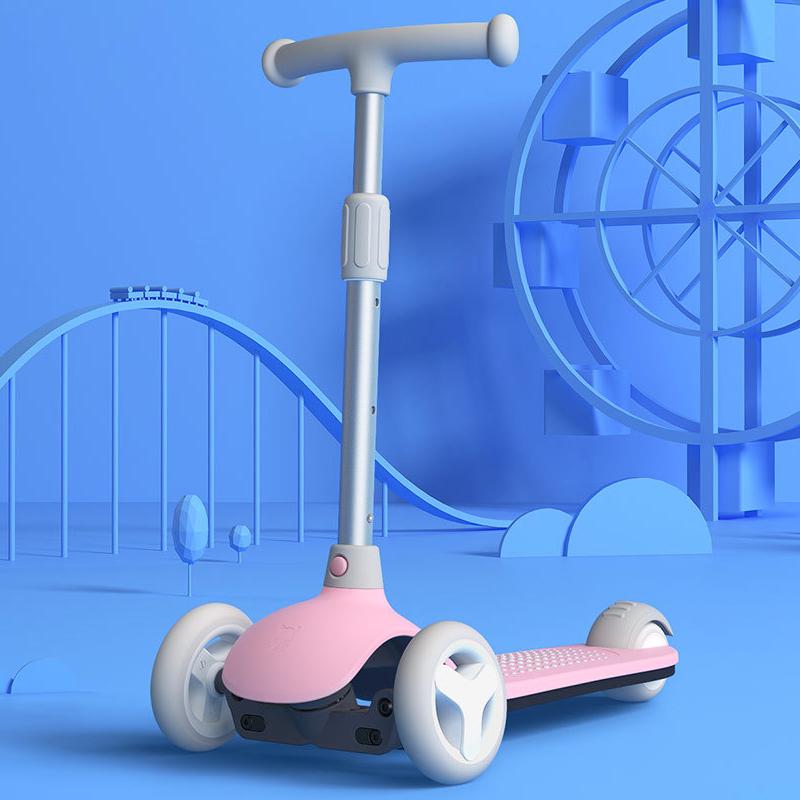 Mitu Kids Scooter [ Dual- Spring Gravity Steering System, Adjustable Height, Ergonomic Rubber Handle, Flashing PU Rubber Wheel ]