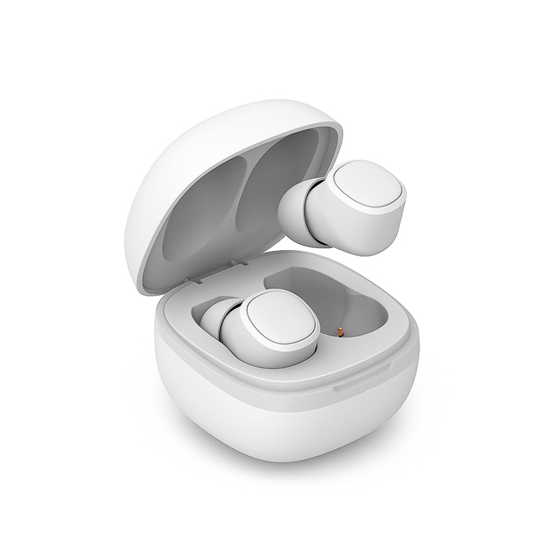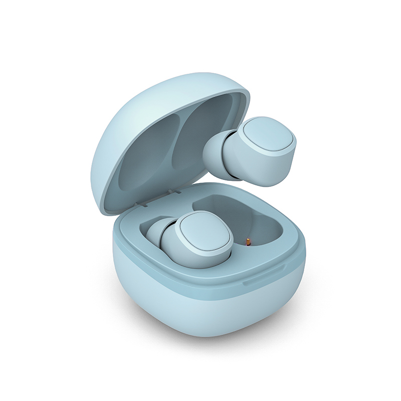 2. Power on: Pick up both earbuds from the charging base for about 3 seconds at the same time, both earbuds Bluetooth will auto-pair while red and blue lights are flashing.