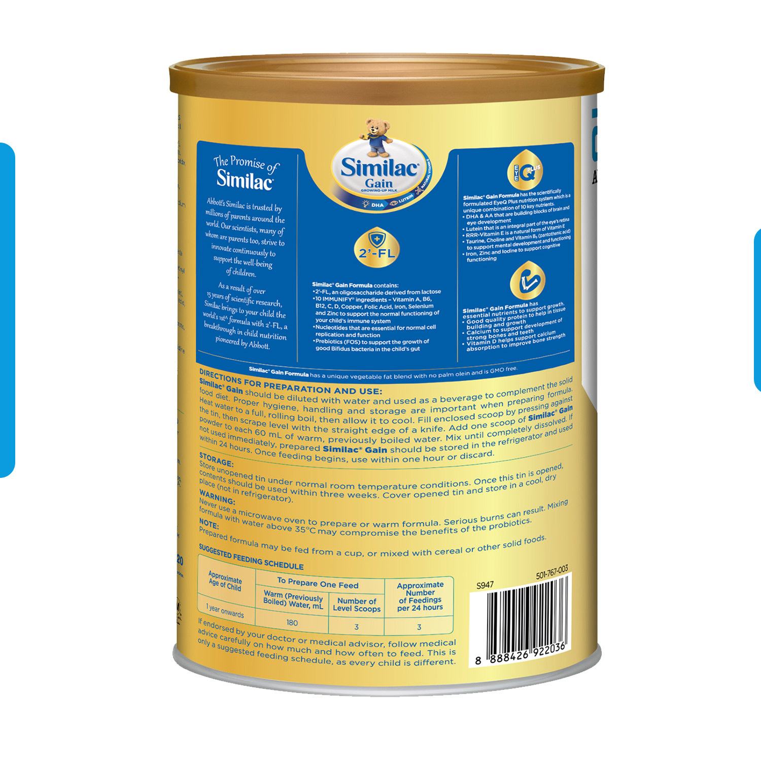 [Bundle of 3] Similac® Stage 3 Gain Growing-Up Baby Milk Powder Formula 2'-FL 1.8kg (1 year onwards)