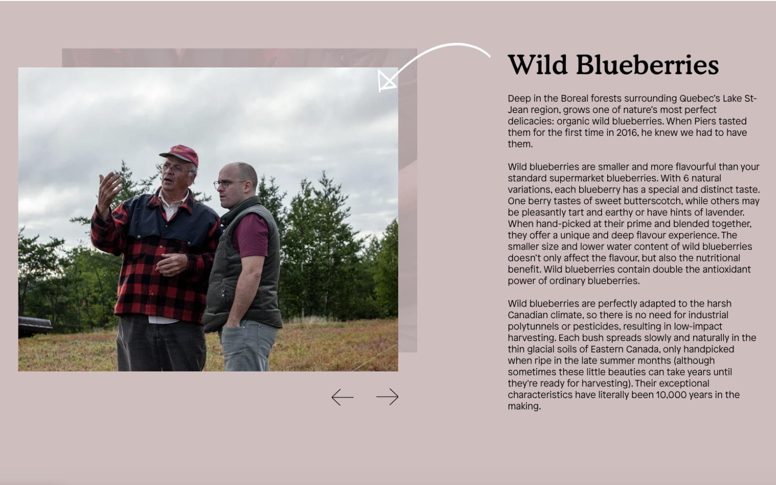 Our wild blueberries are grown naturally in the Canadian tundra and are renowned for their distinct flavour and uniqueness. The smaller size and lower water content means our blueberries contain double the antioxidant power of your standard supermarket blueberries.