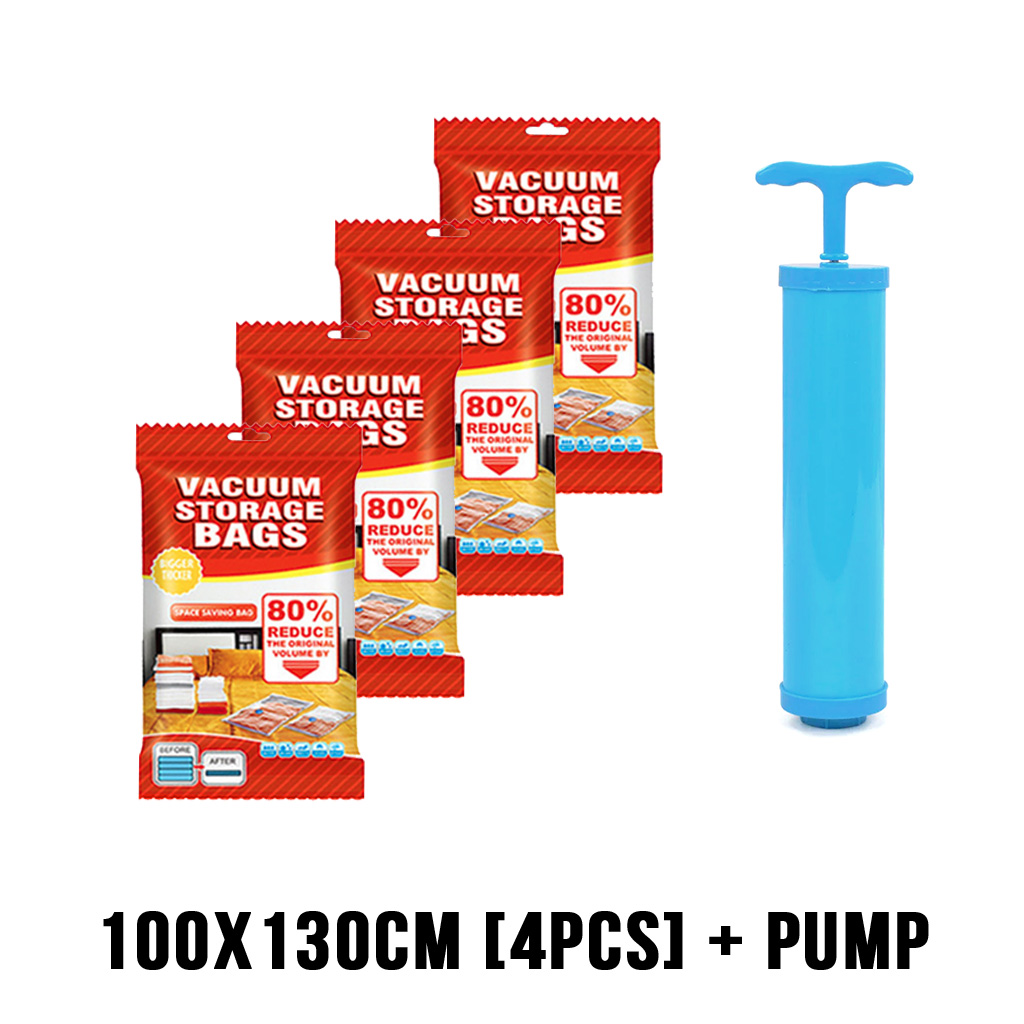 [LOCAL SELLER] FREE Pump + Vacuum Bags Travel Storage for Clothes Reusable Bags Compression Packing For Clothes Clothing Travel with Pump Singapore Set Extra Large Foldable Organizer Laundry Wardrobe